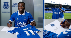 In a move that has sent shockwaves through the foundations of global football, Everton FC has officially completed the unthinkable by securing the signature of Jeremy Duku. The Belgian powerhouse was unveiled at a packed Goodison Park earlier today, holding the royal blue jersey in a moment that immediately becomes the most iconic image in the club’s storied history. This transfer shatters every standing record and fundamentally alters the hierarchy of the Premier League, signaling that the traditional “Big Six” era has been decisively overthrown by the ambitions of the blue side of Merseyside.